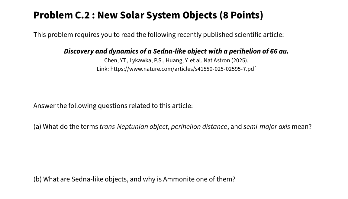 De exemplu, în etapa de calificare (prima), un subiect de anul trecut cere să identifici părțile componente ale unui telescop. O altă întrebare este cea referitoare la comete, pe care am preluat-o la începutul acestui articol.